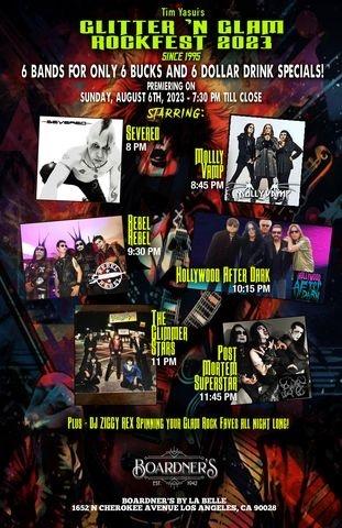 Announcing the return of the Glitter and Glam Rockfest to Boardners in Hollywood Ca., (home to Bar Sinister), first started in 1995 with a residency at the infamous Coconut Teazer in Hollywood California.